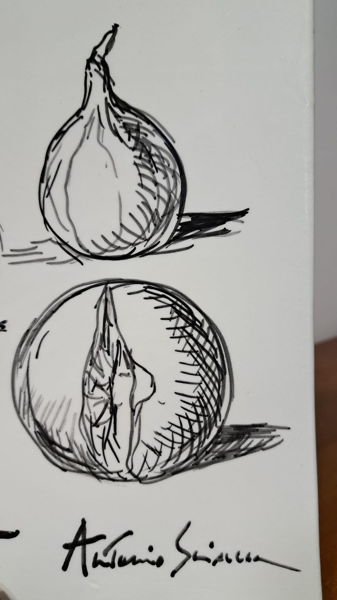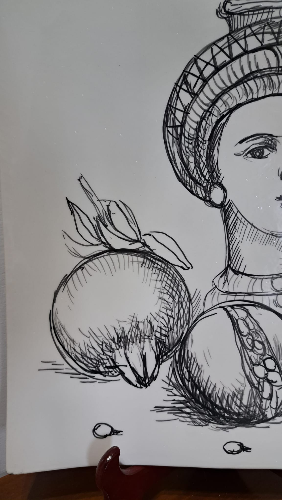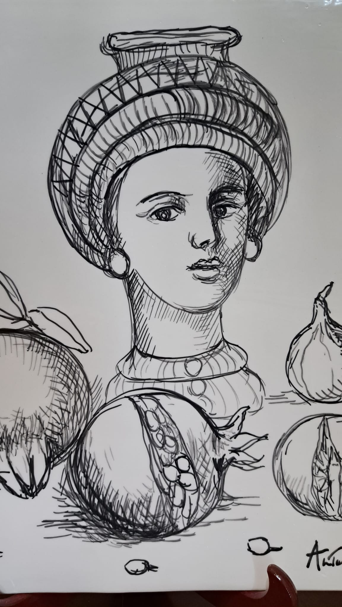 Anche il Maestro Antonio Sciacca ha l’opportunità di cimentarsi con questo antichissimo mezzo espressivo ed esplorare le possibilità che la ceramica offre. Dopo aver visitato diverse fabbriche di ceramica prima a Caltagirone e dopo a Deruta, ebbe l’idea di tracciare su fogli alcune idee con le quali si presentò da un artigiano ceramista deciso a trasformare le idee in prodotti. Questi lavori non sono casuali ma piuttosto il risultato di una riflessione e di una preparazione. In questo senso, il processo creativo è lo stesso seguito per i dipinti a partire dai disegni della variazione e della metamorfosi. Dipingere sulla ceramica non è come dipingere sul cavalletto: quando si dipinge su tela, su tavola, su carta, o comunque su di un supporto che è già pronto, si vedono i risultati in tempo reale. Con la ceramica funziona diversamente: i colori si vedono solo a cottura ultimata, pertanto il corretto bilanciamento della preparazione ( che appare di colore grigiastro ) , per Sciacca rappresenta anche una sorte di sfida. Lo stesso vale per la velocità con cui occorre portare a termine il lavoro perchè la ceramica come è noto ha proprietà assorbenti e per evitare che la preparazione asciughi troppo in fretta è necessario essere rapidi. Sciacca, per altro, sfrutta questa caratteristica a suo vantaggio, perchè in questo modo può conferire maggior tensione e dinamismo al soggetto raffigurato ( i suoi disegni sembrano quasi in movimento ). La ceramica è una delle forme d’arte più antiche che si conoscano: è una forma d’arte cosi antica e di cosi largo uso che Sciacca adatta anche per far arrivare l’arte contemporanea ad un pubblico più ambio.