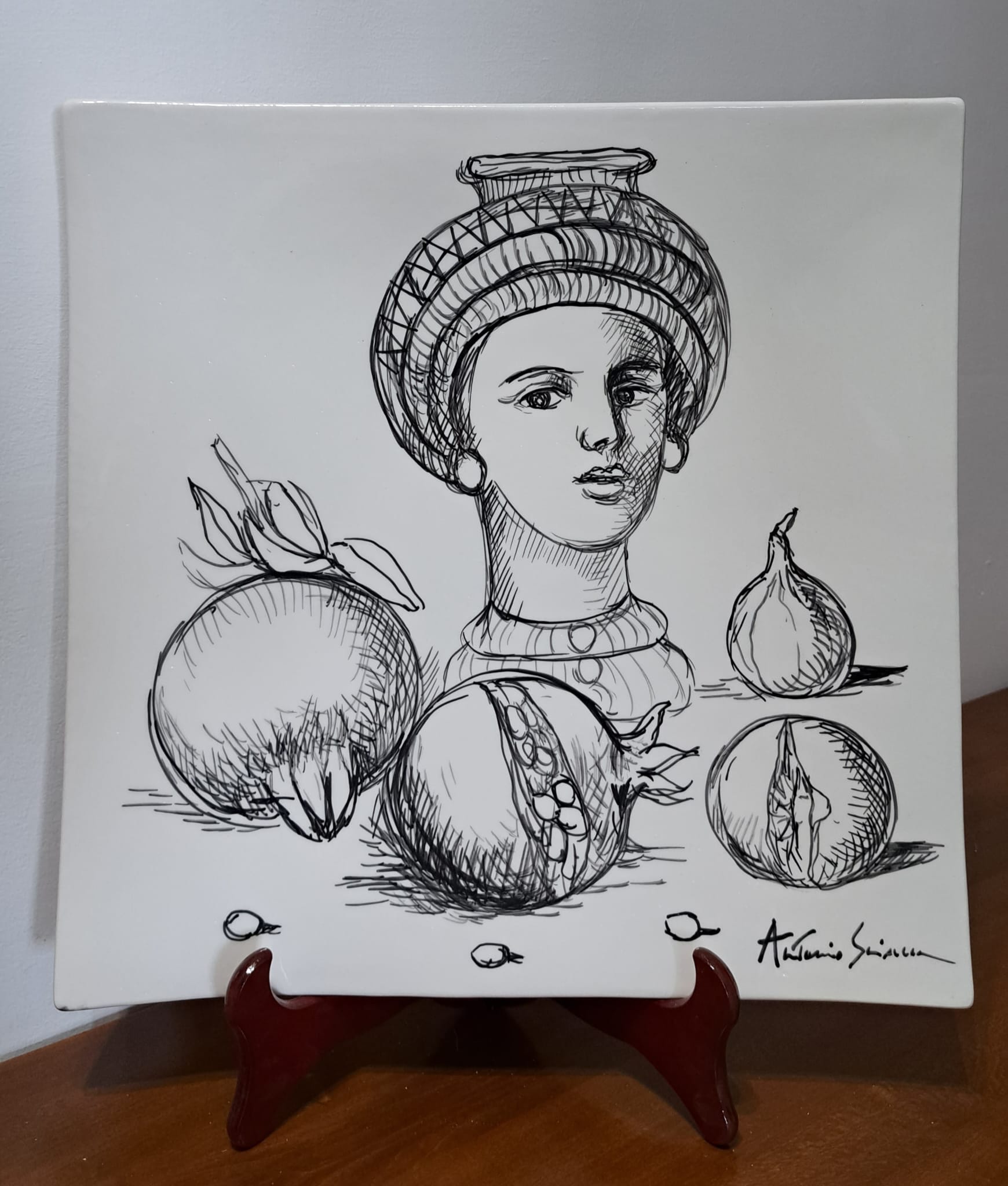 Piatto in Ceramica di Deruta Il Moro quadrato 46 cm