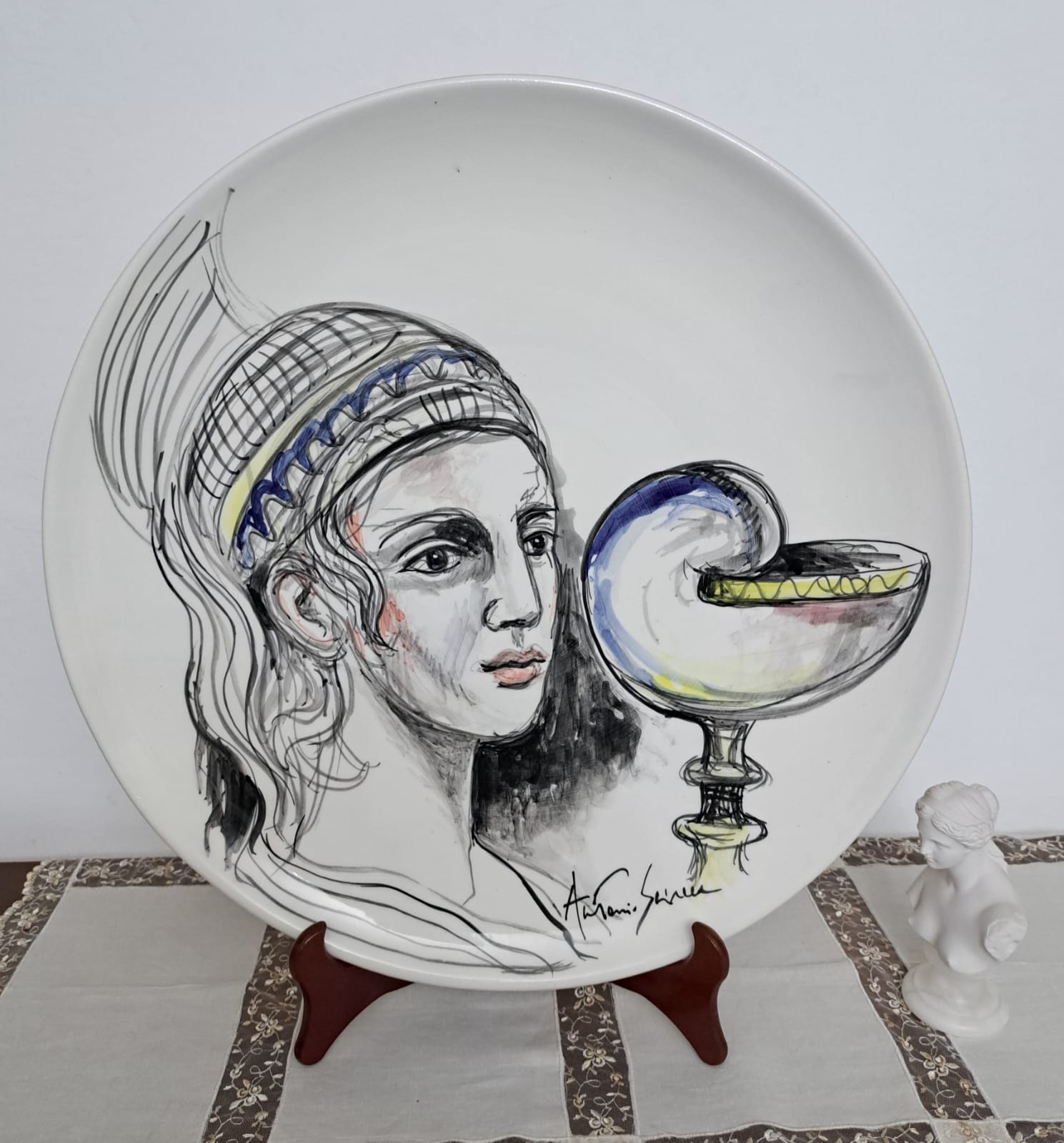 Piatto tondo in ceramica di Deruta opera unica realizzata a mano da Antonio Sciacca misura 45 cm