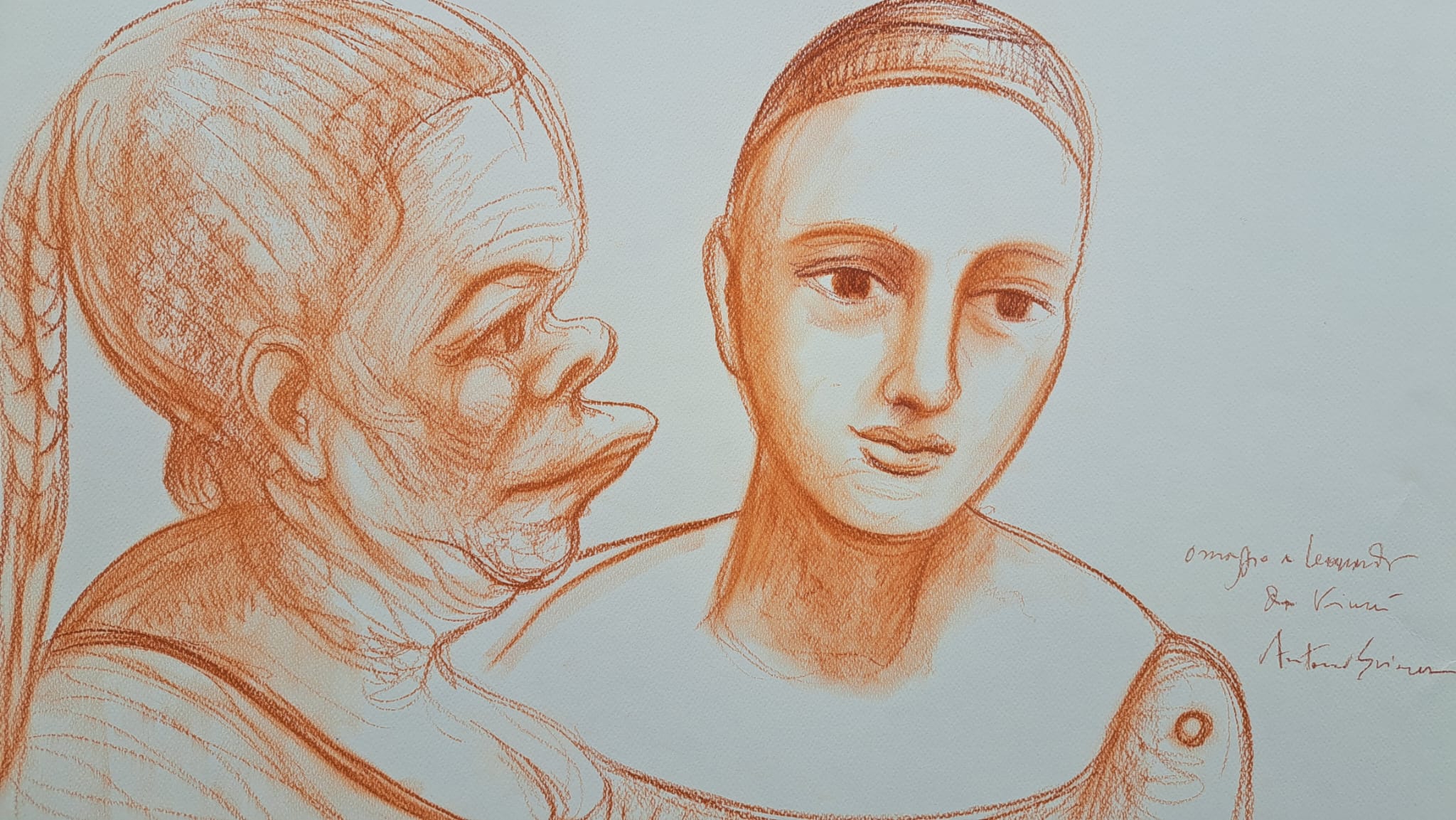 Opera unica di Antonio Sciacca tecnica sanguigna su cartoncino Raffaello misura 50×70 cm omaggio a Leonardo da Vinci